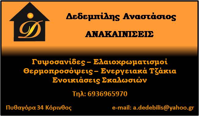 Αναλαμβάνουμε: - Χτίσματα - Επιχρίσματα - Πλακάκια - Ελαιοχρωματισμούς - Γυψοσανίδες - Ενοικιάσεις Σκαλωσιών.
