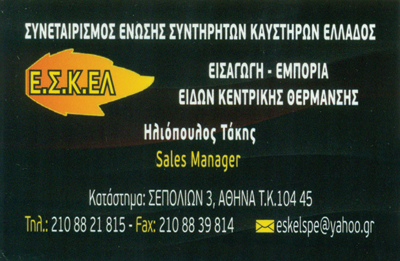 Στα 21 χρόνια της λειτουργίας της η ΕΣΚΕΛ ΣΠΕ εξυπηρετεί τόσο τον επαγγελματίαΣυντηρητή καυστήρων όσο και τον ιδιώτη καταναλωτή διαθέτοντας πάνω από 3000 είδη σε όλη την Ελλάδα.Σχετικά με την ποιότητα των προϊόντων μας, σας ενημερώνουμε πως έχουμε συνεργασίεςτόσο με επώνυμους οίκους του εξωτερικού όσο και της εγχώριας αγοράς με απώτεροστόχο τη συγκέντρωση και διάθεση ανταλλακτικών εξαρτημάτων πρώτης κατηγορίας.