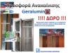 Ισχύει για κάθε αντικατάσταση κουφωμάτων όπου το κόστος είναι ίσο ή μεγαλύτερο του ποσού 4.000 € + ΦΠΑ, χωρίς καμία επιβάρυνση αγοράζουμε και τοποθετούμε θωρακισμένη πόρτα ασφαλείας με επένδυση laminate και χρώμα της επιλογής σας εντελώς δωρεάν. Σε περίπτωση ειδικής διάστασης ή επιλογή σχεδίου για laminate ή επιλογής επένδυσης αλουμινίου επιβαρύνεστε μόνο με την διαφορά που προκύπτει σύμφωνα με την επιλογή σας. Για να αποκτήσετε την προσφορά μας θα πρέπει να κάνετε like & share την σελίδα μας στο Facebook (https://www.facebook.com/Geralumin/). Η προσφορά ισχύει έως 31/12/2019 και ενεργοποιείται με την παραγγελία σας.